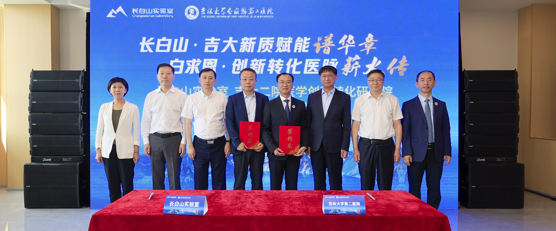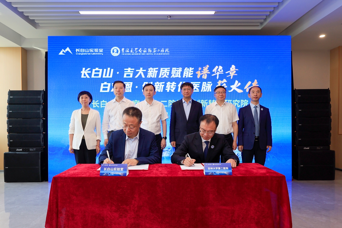 长白山实验室与吉大二院医学创新转化研究院签约仪式举行【文字/饶明月 吉大二院 图片/王元辰】6月25日,长白山实验室与吉林大学第二医院医学创新转化研究院签约仪式在长白山实验室举行。吉林大学校长张希,吉林省科技厅副厅长付帅,校党委常委、副校长赵国庆出席仪式。仪式由吉林大学白求恩第二临床医学院院长王海峰主持。签约仪式上,在张希、付帅等领导的见证下,长白山实验室常务副主任周强与王海峰代表双方签署合作共建协议。会上,吉林大学白求恩第二临床医学院党委书记秦彦国汇...