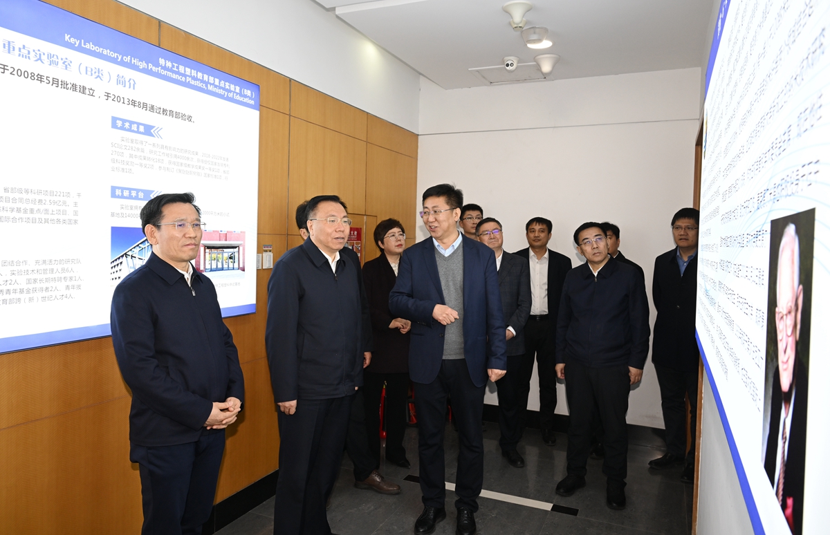 在长白山实验室园区和特种工程塑料教育部工程中心,郭灵计一行听取了实验室发展定位、创新团队攻关方向、代表性科研成果、实验室运行机制及建设进展情况汇报,并与科研人员深入交谈,勉励大家要紧密结合国家战略所需、吉林发展所需,推进教育、科技、人才一体谋划,联动培育新质生产力,促进科技成果落地转化,激发高质量发展内生动力,打造吉林省科技创新的新高地。